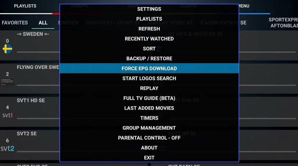 Vi rekommenderar att du laddar upp din IPTV-spellista med Xtream Codes (alltså med de inloggningsuppgifter som du får av oss vid köp eller gratis test). Detta eftersom att din EPG (programguide) då automatiskt installeras i bakgrunden.