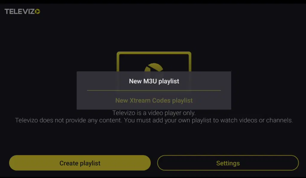 Starta appen. Tryck sedan på “Create playlist” och välj “New Xtream Codes playlist“.
